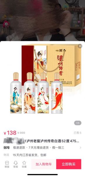齐鲁晚报·齐鲁壹点记者进入到一家所在地显示为“杭州”的一家酒行直播间,主播正在售卖一款“泸州传奇”的酒水,产品规格为每箱4瓶(475ml/瓶)、52度的白酒,主播在直播时扫码价格显示为1680元,在某购物平台的售卖价格是668元,但直播间限时拍下,则是138元。