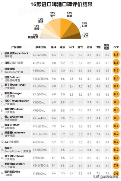 2022年11月,《消费者报道》收集并分析了16款进口啤酒在天猫、京东官方渠道近6.2万消费者评价数据。