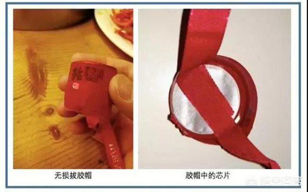 2013年5月,茅台正式启用“RFID”芯片防伪溯源系统,防伪芯片由一盘圆形电子线圈组成,安装在红胶帽封膜下,位于瓶盖顶部。透过胶帽看瓶盖,发现一圈白白的就是NFC芯片,每片芯片由贵州茅台酒在生产线上写入唯一识别码,每瓶酒都与这些识别码一一对应。