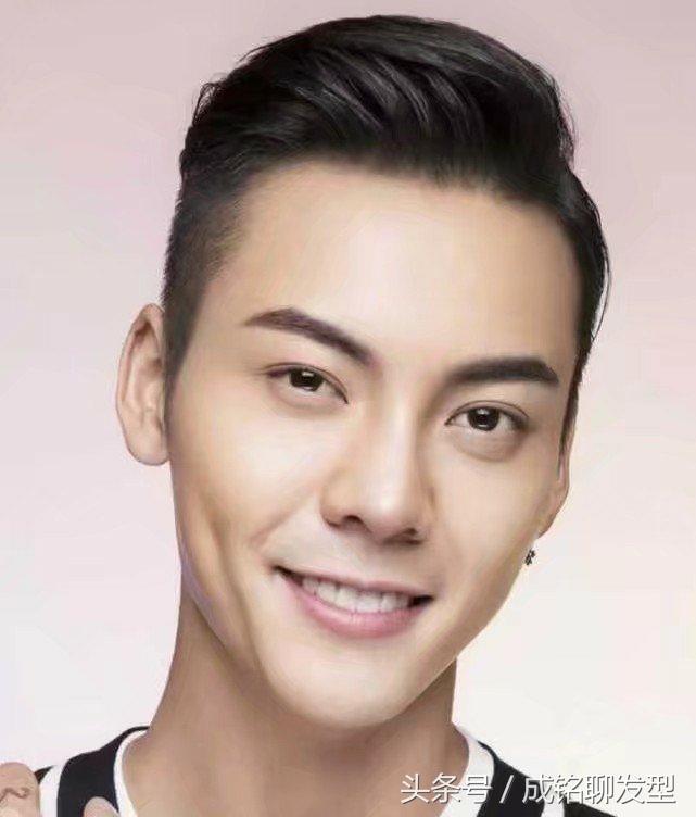 标准的油头二八分发型,从正面看也略带背头的感觉,有人也成这种发型为背头。
