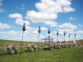 勒勒车一般车身长4米以上,车上可带篷。带上篷,战时还常用作驮运军队辎重的战车。