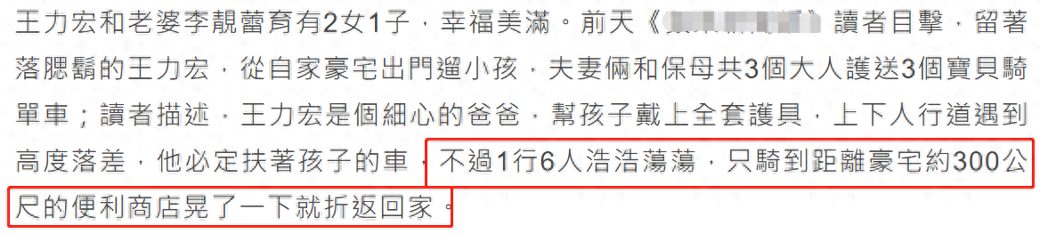 据偶遇者描述,王力宏很细心,过马路遇到高度差,他一定要扶着车。但其实他们没走多远,只是在离家300米的便利店晃了一圈。