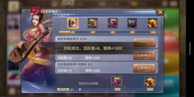 ⑤每天有100点活跃度宝箱一天10元宝,一个月300