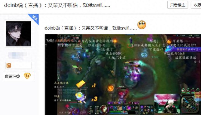 不过最近常看Doinb直播的网友意见很大,他直播时十次有八次都会鞭尸Swift,动不动就吐槽队友又菜又不听话,就像Swift一样。对此就有网友表示不能忍了,Doinb成绩好粉丝多也不能这么跳啊,成天鞭尸Swift有意思?当初QG曝出队霸事件,错的最多的人应该就是Doinb,还有网友补足当初的一些具体经历,Doinb和Swift谁好谁坏还真不一定。