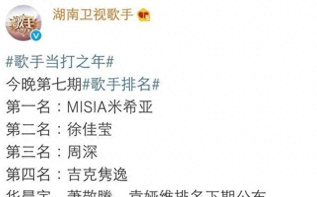 歌手最新一期排名!歌手当打之年第八期排名歌单:华晨宇确认安全 耿斯汉奇袭袁
