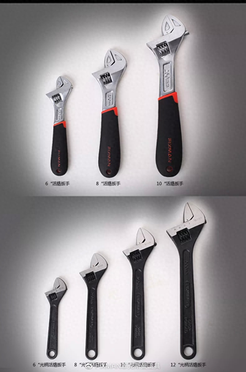 开口宽度可在一定尺寸范围内进行调节,能拧转不同规格的螺栓或螺母。活动扳手又简称活扳手,其开口宽度可在一定范围内调节,是用来紧固和起松不同规格的螺母和螺栓的一种工具。活动扳手有头部和柄部构成,头部有活动板唇、呆板唇、板口、 涡轮和轴销构成。旋转涡轮可调节板口的大小。