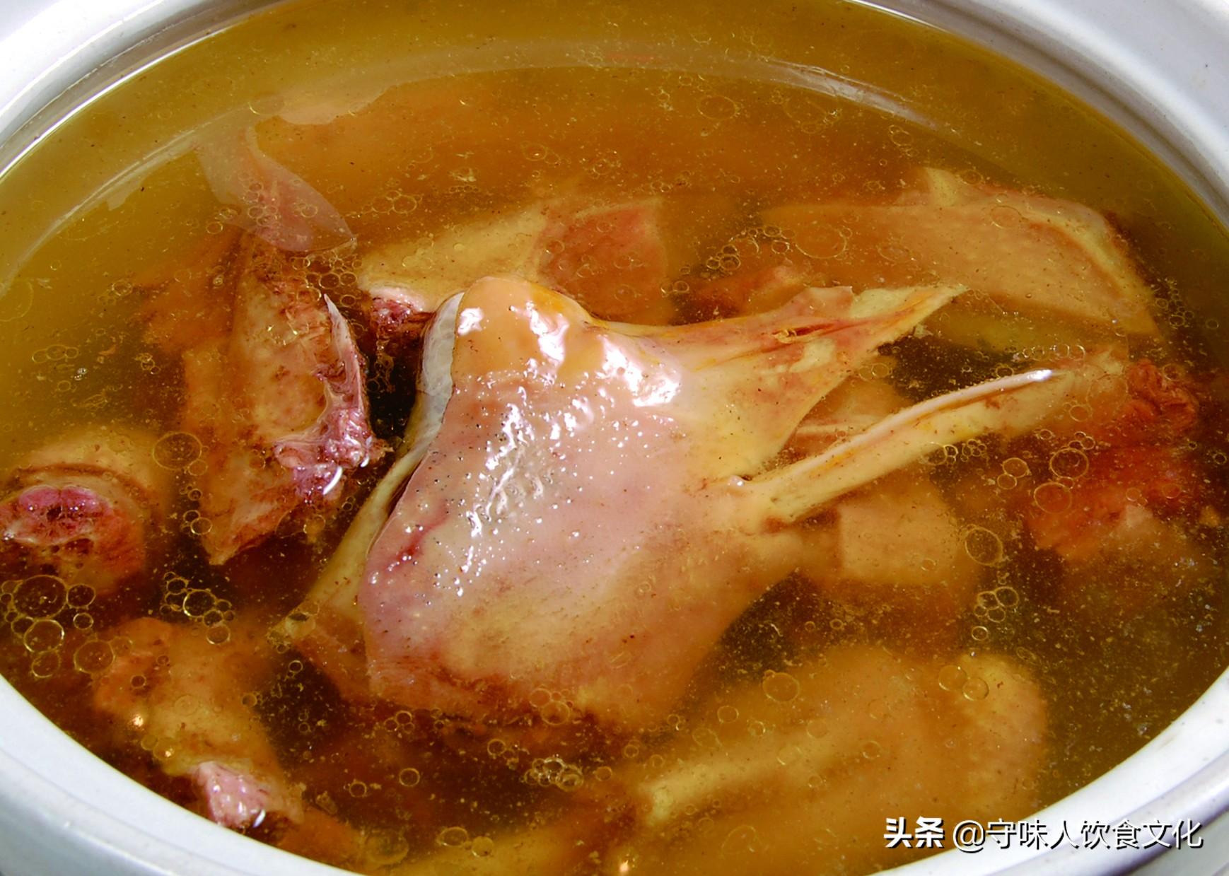 )。锅中放一 大碗酒与一大碗水蒸鹅,灶内放两束山茅,慢慢烧光为止。等锅冷后揭盖,将鹅翻身,仍将锅盖封好再蒸,再烧一束山茅。锅盖用绵纸糊封,起锅时,不但鹅烂如泥,汤汁也非常鲜美。