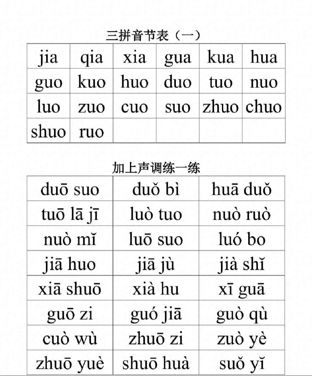 二拼音节:一个声母和一个韵母组成。例如:好好学习(hǎo hǎo xué xí)都是二拼音节