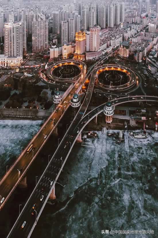 在辽宁看海,比在三亚更大气壮阔。尤其是在冬季,由于辽东湾水浅难以储存热能,加上西伯利亚寒潮的南下,一种在独特的现象在渤海上出现:海冰。