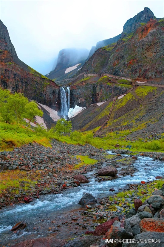 天池的湖水奔涌而下,形成了落差达68米的长白瀑布,瀑布之下的流水逐渐汇集成河,被称为二道白河,是为松花江的南源。