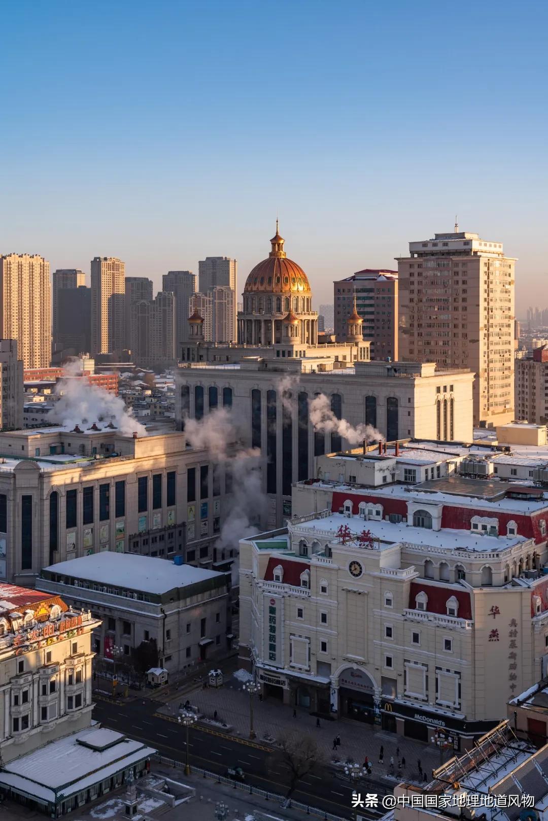 俄罗斯的文化风情,在哈尔滨的旧建筑上最为集中。走在哈尔滨的大街上,赭红或墨绿的“洋葱头”大圆屋顶建筑、成排连栋的斜顶洋房、太阳岛上形状各异的欧式别墅、光滑的石子路,无不令人着迷。