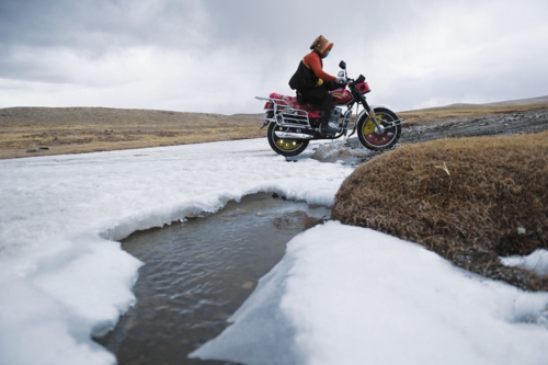 约古宗列曲位于青海省玉树藏族自治州曲麻莱县麻多乡,这里是三江源国家公园的核心区。三江源国家公园在生态保护第一的前提下,建立”一户一岗”生态管护公益岗位机制,园区内每户有1名生态管护员。图为在约古宗列曲附近,生态管护员才仁扎西驾驶摩托车巡护。 新华社记者张龙/摄