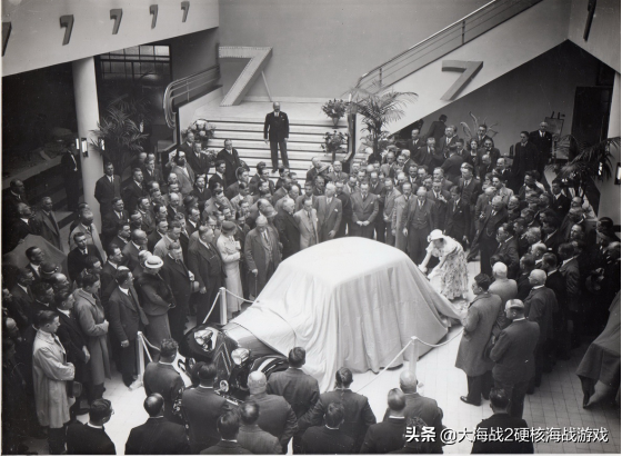 1934年4月18日为全球第一辆前轮驱动汽车、全球第一辆一体化车架车型:7 CV揭幕的照片,站在阶梯上的就是安德烈.雪铁龙,而此车后来更名为Traction Advant。