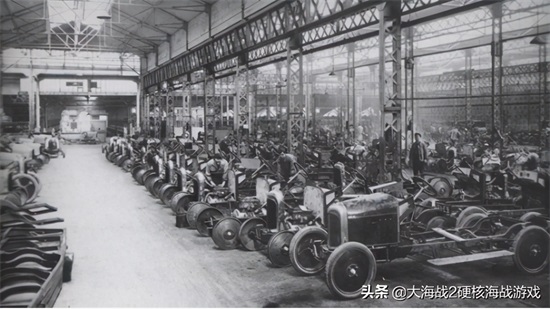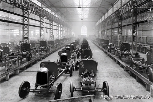 摄于1922年的巴黎雪铁龙工厂,Type A车型的流水线,每天产量约可达到100辆。
