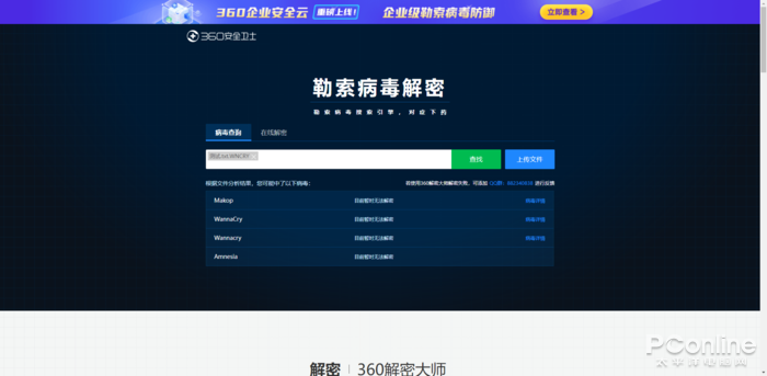 国内知名安全软件360页推出了一个专门的勒索病毒查询与在线解密网站。