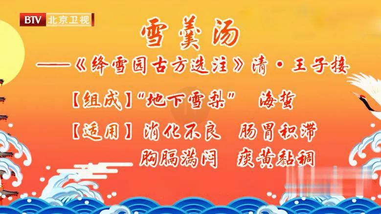 针对消化不良、脾胃积滞的朋友,北京中医药大学东方医院张院长推荐消积通便的雪羹汤。