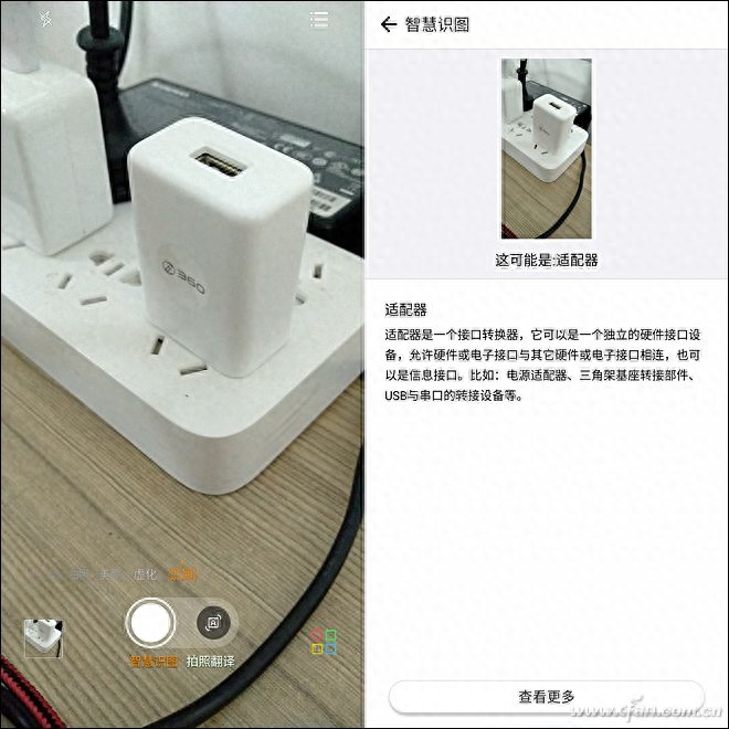 此外,基于AI引擎技术,360手机N7 Lite还在相机中新增“识别”功能,不仅可以识别出画面中的物体,更支持中、英、日、韩、法、德等十国语言的实时取词翻译。