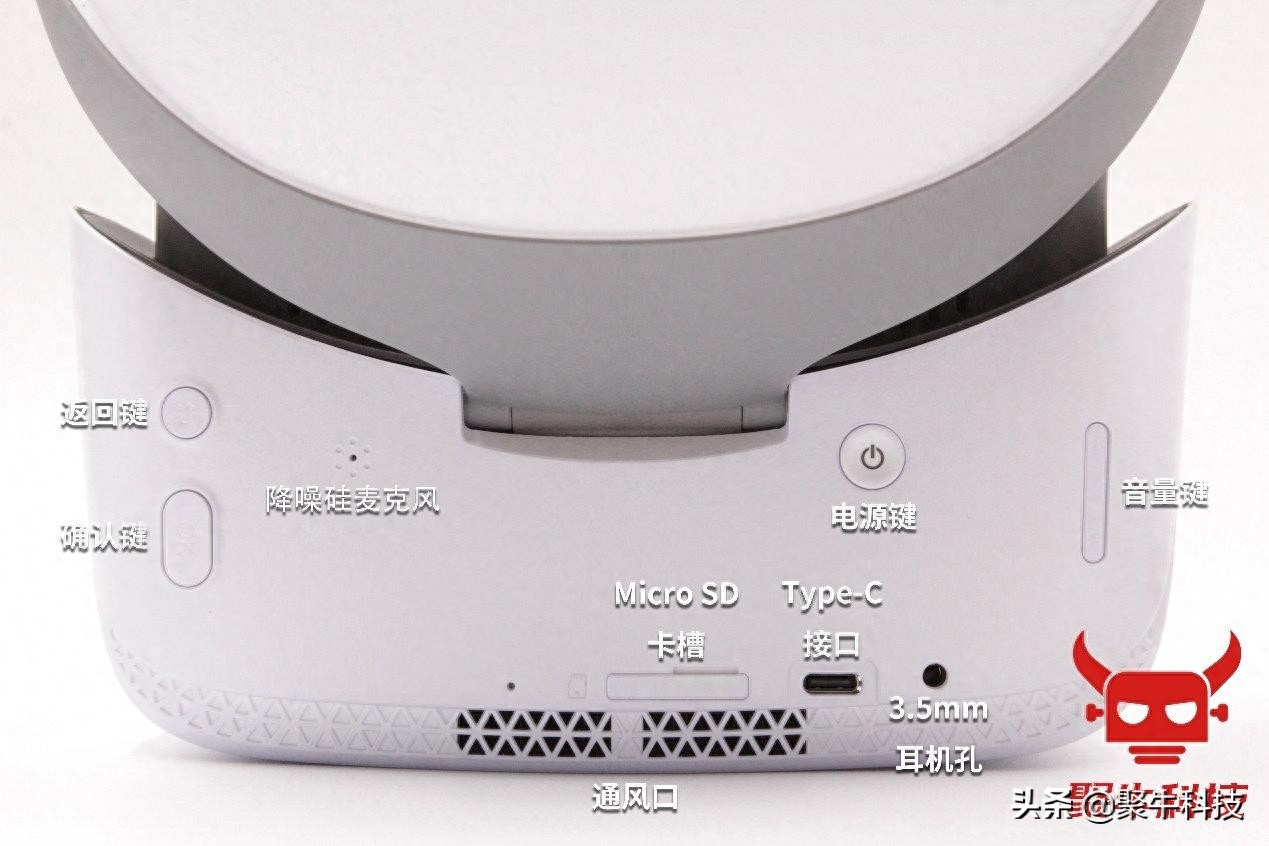 头显的主机部分,还是同样的配方、同样的味道。布局与前代变化不大,但却更加的合理,并加入了控制音量的物理按键。在脱离手柄的头显控制模式下,右手控制确认返回等功能按键,左手则控制音量键与电源键。