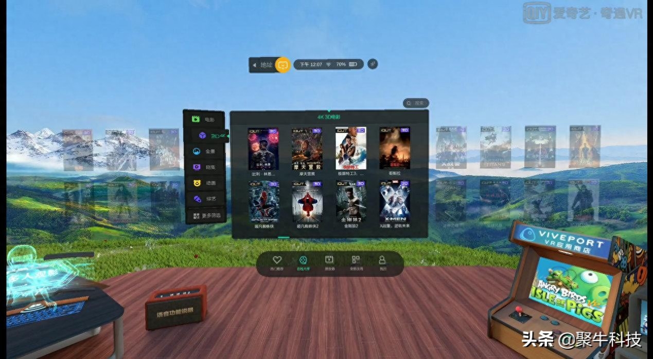 当然,我想说的重点并不是奇遇2S支持其它VR视频平台,而是奇遇2S拥有独享且特供的更高质量VR视频平台——爱奇艺iQUT未来影院。简单来说,奇遇2S接入的并非仅仅是单纯的爱奇艺VR这么简单,而是爱奇艺专为奇遇系列的4K观影屏幕,专属定制优化且独占的9Mbps H.265编码方式的iQUT超清片源平台,完全领先于同类VR视频平台。每周更新最新最热的好莱坞大片,独居全网最优质的的3D 4K电影平台。