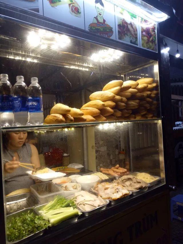 法棍面包,因为越南以前是法国殖民地,所以法棍成为了当地的小吃。