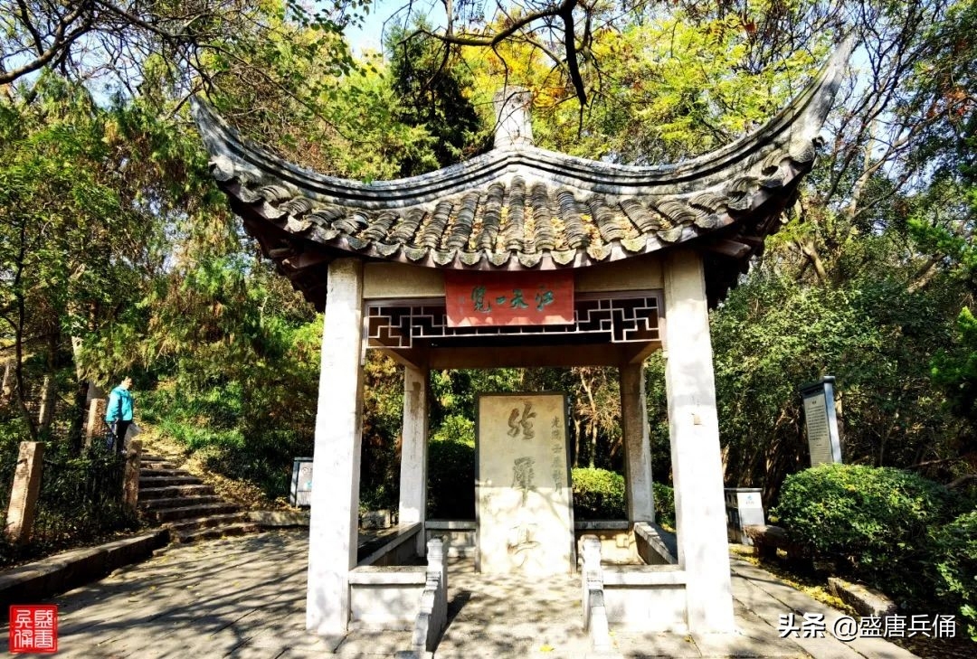 四方小亭简朴典雅。亭匾额书“江天一览",在此远眺,万里江天本可以一览无余。