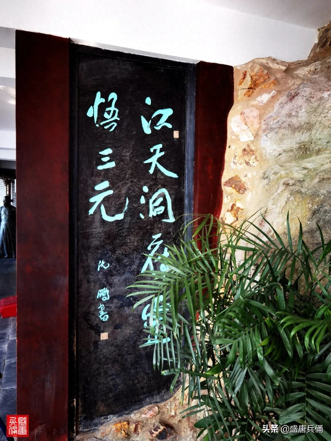 太白楼里李白卧像背景《千古一秀采石矶》,应该也是以这个画面为素材创作的。照片左右都能看出“矶”的样子来。