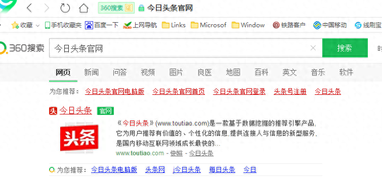找一台能上网的电脑在浏览器上输入《今日头条》(这里不用输书名号),点击今日头条官网进入,如图: