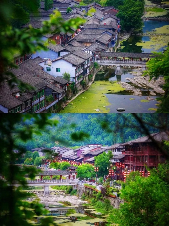 ✅古镇山清水秀,自然生态秀美,民风古朴,明清民居错落有致地连缀在一起