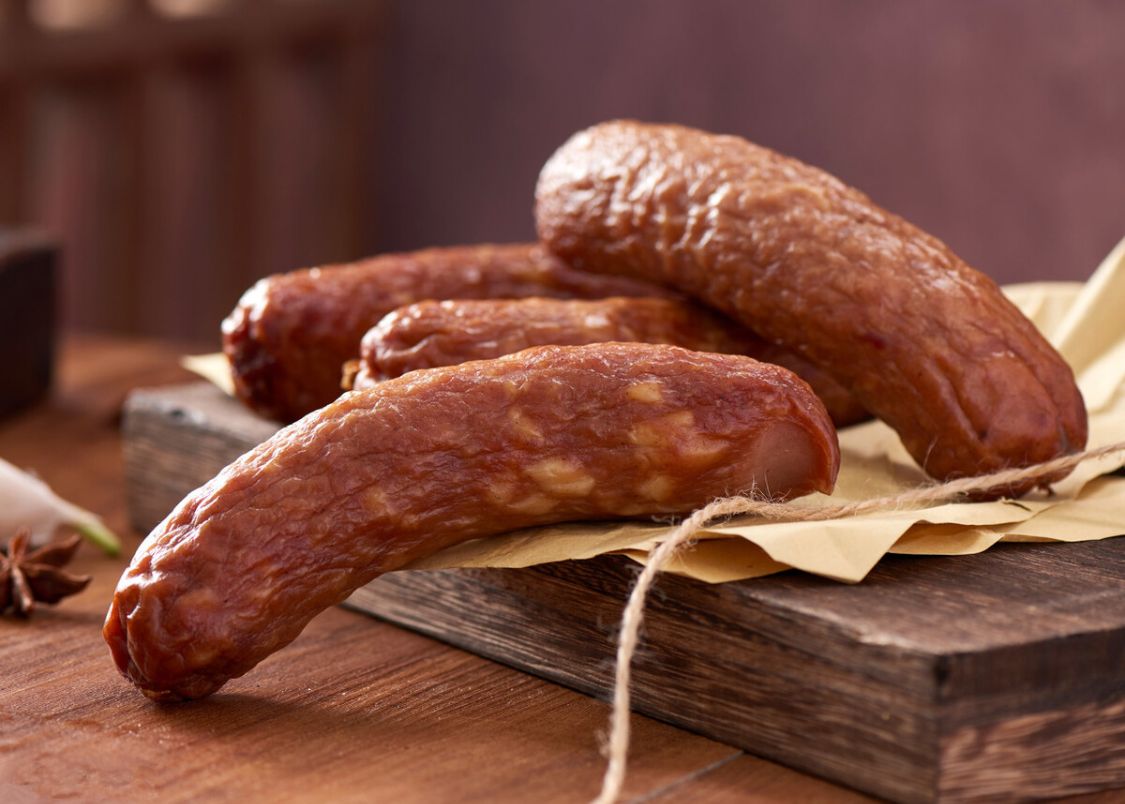 红肠秉持着多肉少淀粉的加工原则,一口下去满口肉香,味道和口感甩大多数肉肠、火腿肠几条街。经过烟熏后的红肠,消耗掉部分油脂,肠衣紧锁,让整个红肠起皱却极具光泽,有熏烟和果木的芳香,切片的红肠片片都瘦中带肥,吃起来肥而不腻、恰到好处,蒜香和胡椒香气逐渐弥漫在口中,回味无穷,这也正是红肠能够受到东北人欢迎的理由。