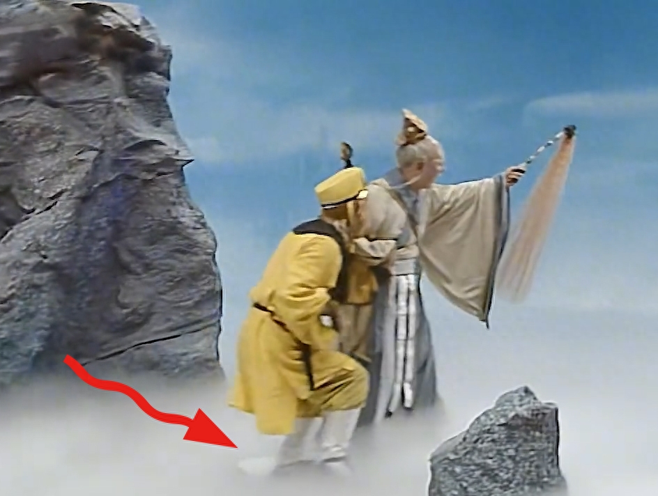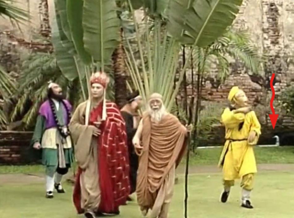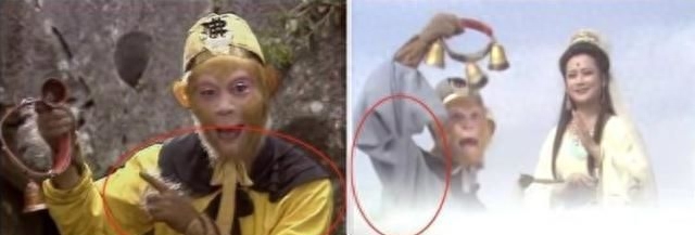 就出现过一个非常明显的穿帮镜头,因为当时的特效技术不够先进,所以能够看到唐僧的手都断了。