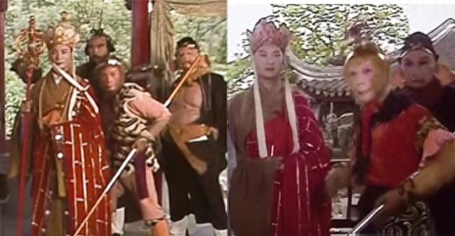 能够明显的看到孙悟空衣服的巨大变化,前一个镜头还是虎皮在身,后一个镜头就已经身穿红色的衣服了。