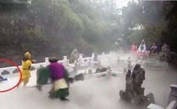 看来为了营造云雾缭绕的情况,工作人员也是要不断的制造烟雾呢。