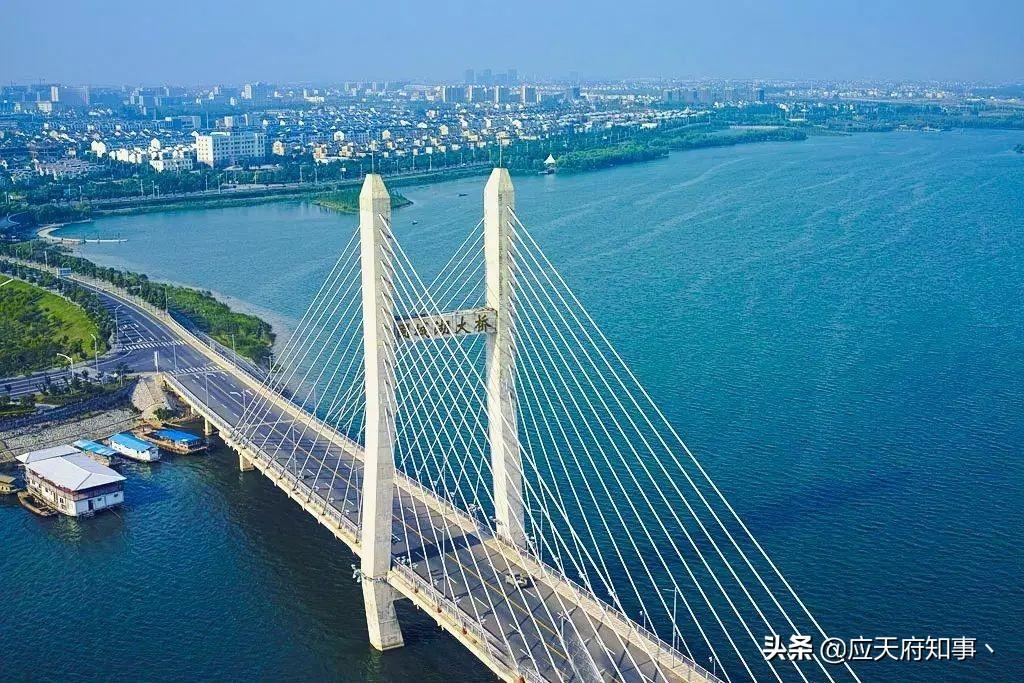 傍晚时候骑着双人自行车看向旁边的固城湖大桥,颇有些一道残阳铺水中,半江瑟瑟半江红的意境。