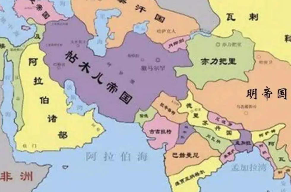 这么一来,我们就会发现,帖木儿帝国的地盘,向东抵达了西域,向西则抵达了中东的伊拉克地区,包括高加索部分地区。