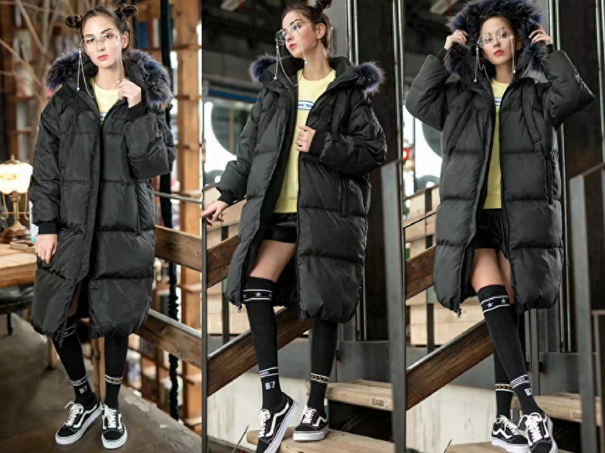 长款设计的羽绒服,气场感满分的,但是比较适合高挑一点的妹子来穿,这样穿起来会更加有型有气场的,这款黑色设计的羽绒服,百搭又好看,长款的设计,随便穿起来都给人一种大大的时髦感,插肩袖子设计,修饰肩部线条,不显胖,方便你肩部的活动,随意自由啦,帽子胡藏式厚实的毛毛,增加时尚感和温暖感,而帽子做了小心机可拆卸的设计,更方便打理,整体直筒的版型,还是过膝的长度,对于身上的肉肉遮掩地好好的,所以搭配黑色休闲鞋和黑色中筒靴,这么穿谁穿谁时髦,还炒鸡好看。