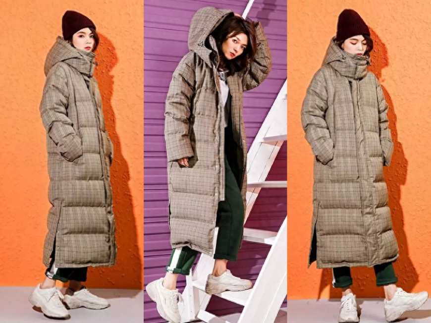 比较个性的格子长款羽绒服,寒冷的天气,要知道穿不够,根本没有出门的勇气,那么选择这款比较长款设计的羽绒服就轻松搞定了,过膝接近脚踝的长款,能暖到小腿肚,仿佛一张被子一样,超级时髦暖和的,走路带风自带高级感,复古的格纹元素的点缀,和羽绒服的融合,摆脱单调感,时髦更好看,这个冬季就让它来唤醒你冬季的衣橱,搭配运动裤,让你轻松穿出时髦又很好看的造型来。