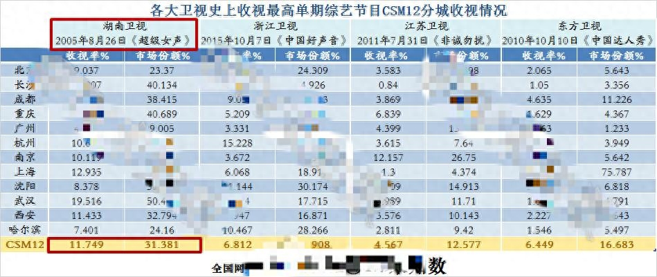 2005年8月26日的这期节目是湖南卫视单期收视率最高的节目,据城市收视率指数显示这期节目收视率达到11.749%,什么意思呢——这一天,全国有大约10成以上的电视在播放《超级女声》。