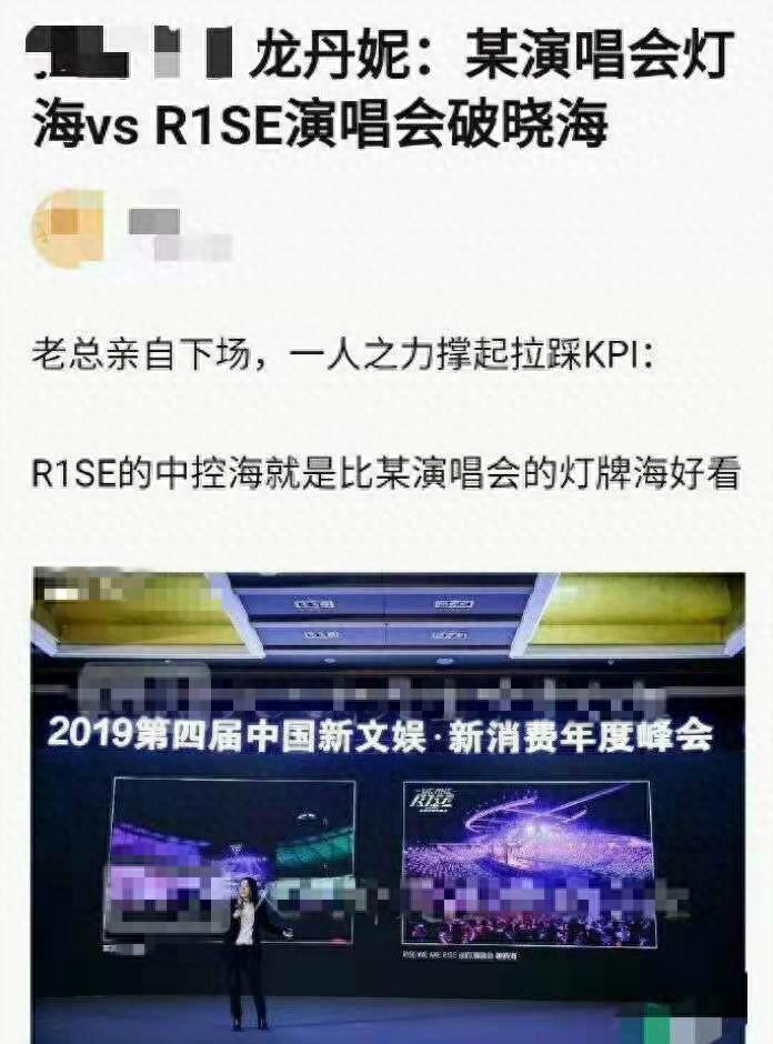 面对台下坐着的数位同行,龙丹妮首先分析了旗下11人男子偶像组合R1SE的单人镜头和秒数,随后她直言:“R1SE的中控海就是比TFboys的灯牌还好看”。