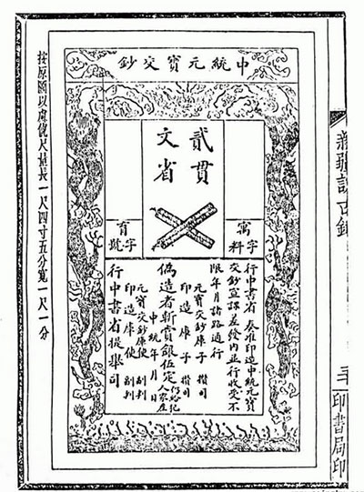 到了元代,进一步完善了纸币制度。意大利旅行家马可·波罗来到中国后,发现了元代使用的纸币,于1298年撰写的《马可波罗游记》中,详细介绍了我国纸币印制工艺和发行流通的情况。从此,欧洲人了解了纸币。美国学者罗波特·坦普尔说:“最早的欧洲纸币是受中国的影响,在1661年由瑞典发行。”