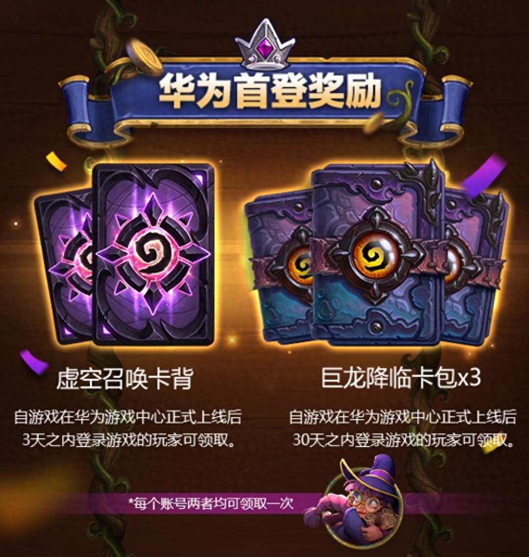 7.现在还有华为手机下载炉石传说送登录送卡背活动