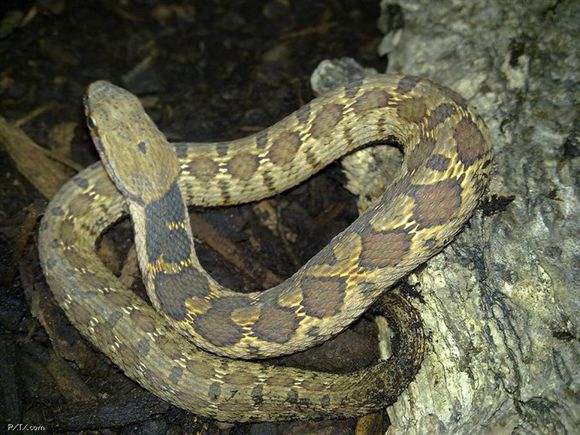 颈棱蛇(Macropisthodon rudis)属游蛇科(Colubridae)颈棱蛇属的无毒蛇(Macropisthodon),该属在世界上已知有4种,分布于印度、印度尼西亚、泰国、马来西亚、新加坡和中国。我国仅有颈棱蛇两亚种。中型蛇类。头部在缩扁时会呈三角形,外观非常类似山烙铁头和蝮蛇,但山烙铁头和蝮蛇瞳孔垂直,有颊窝,可作为辨别二者的依据。游蛇科蛇类我国产有37属144种,几乎都为为无毒蛇。