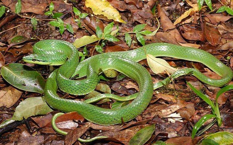 灰腹绿锦蛇为游蛇科锦蛇属的爬行动物。无毒蛇,全长约1m,体尾均较细长,尾长占全长的五分之二。通身背面翠绿色,腹面淡黄色,眼后有一条黑色纵纹。全长1m左右,最长可达1.456m。头较长,颈明显,尾细长。上唇鳞8(2—3—3),无颊鳞;眶前鳞1,眶后鳞2;颞鳞2(1)+3(3);背鳞19(21)—19(17)—15(13),除中央数行微棱外,余均光滑;腹鳞208—224;肛鳞2片;尾下鳞108—151对;背面绿色(幼体棕褐),眼前后各1条黑纵纹,腹面淡黄或淡灰,腹鳞两侧白色。
