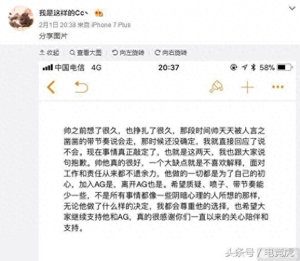 北京时间2月1日,AG超玩会中单老帅微博宣布即将离开AG超玩会,一时间引发了网友们的热议。