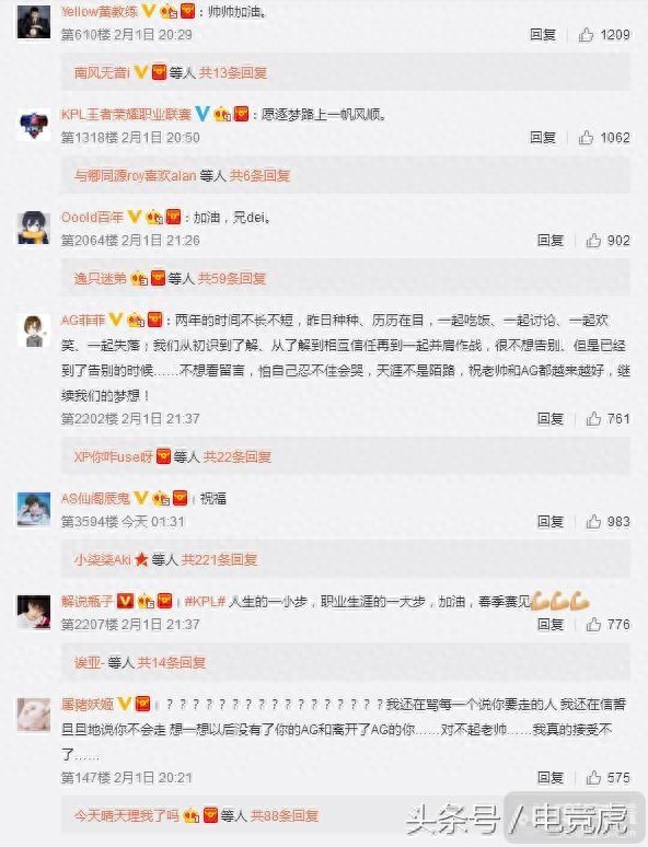 在老帅的微博发出之后,无论是他的圈内好友,还是他的粉丝,都纷纷送来祝福。AG超玩会的经理菲菲也表示不舍,送上祝福。