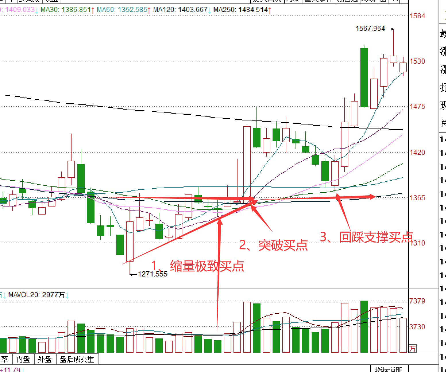 买点1:整理末端,缩量的极致处;