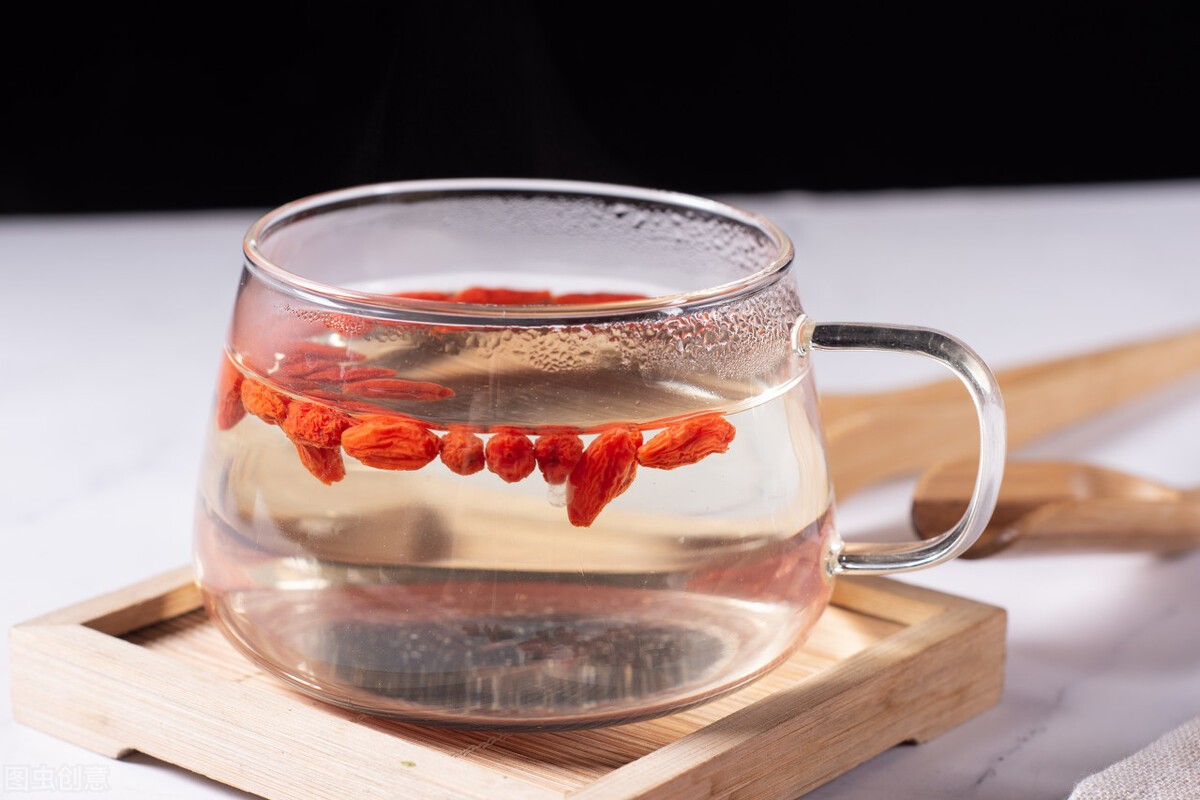 枸杞茶性温热,所以大家在冲泡枸杞茶时可以配上菊花、冰糖或红枣一起冲泡,这样养生效果会更佳。但枸杞茶每天喝的量不能太大,否则会引起上火。