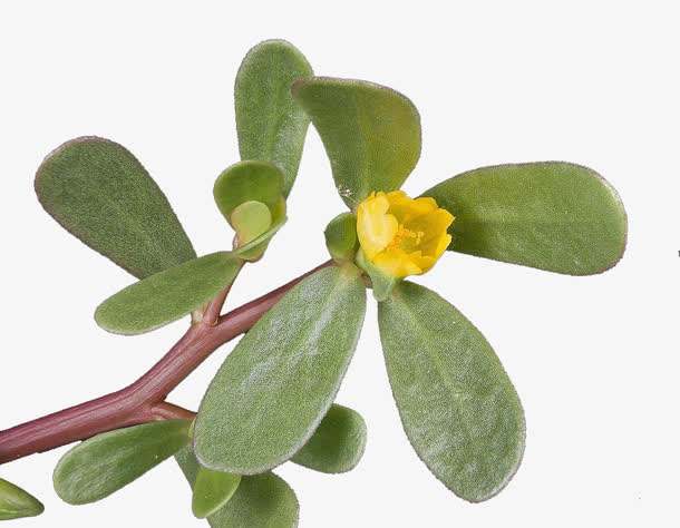 马齿苋因叶如马齿状,而性滑利似苋,故名马齿苋。又叫五行草,别看它小小的一株,浑身有五种五行的颜色:叶青、梗赤、花黄、根白、子黑。