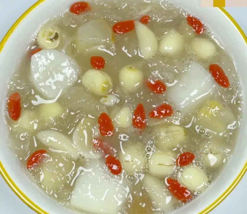 山药、雪梨、银耳、鲜百合、枸杞、莲子、冰糖