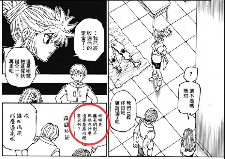 西索和库洛洛一战惨败之后,被幻影旅团确认死亡之后才一个个离开,而玛奇在最后观察西索时,他突然醒来,将玛奇绑住之后,告诉她自己接下来将会以整个幻影旅团为目标,不分任何时间场合进行死斗。从表面上来看,西索是为了让玛奇给库洛洛捎个话,但这根本说不通,他大可以杀掉分散的玛奇、酷哔和侠客,然后在他们尸体旁留下自己的想要留下的信息,甚至什么都不说,库洛洛都知道是怎么回事。所以他和玛奇的关系,并不简单。