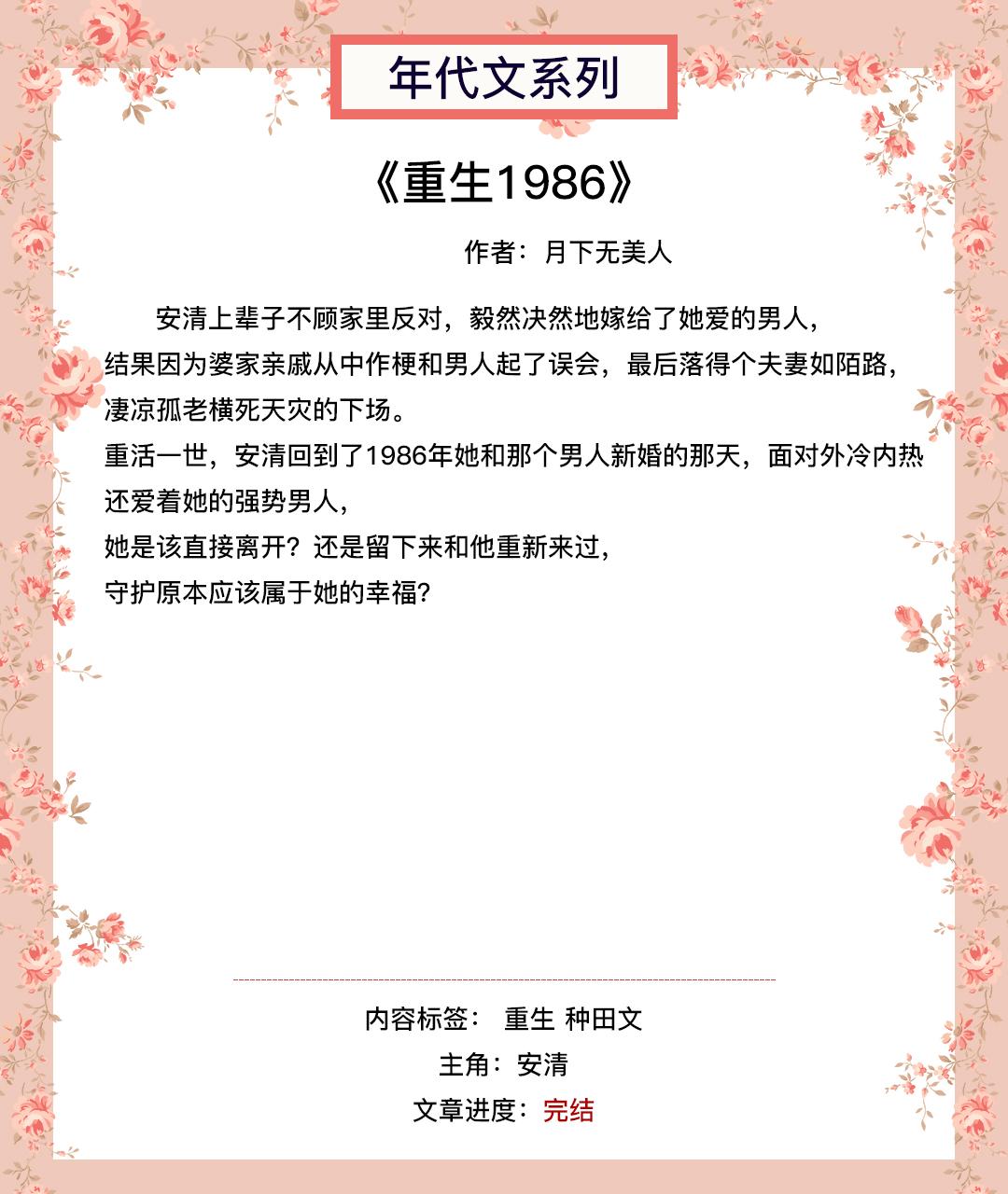 第十四本《重生1986》作者:月下无美人